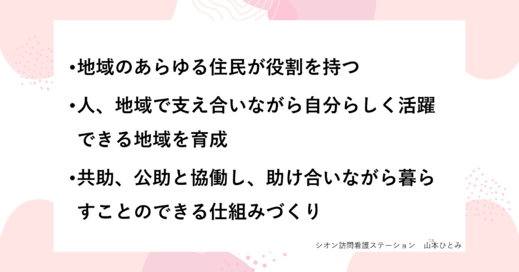 これらが組み合わさることで、地域での暮らしが支えられています。