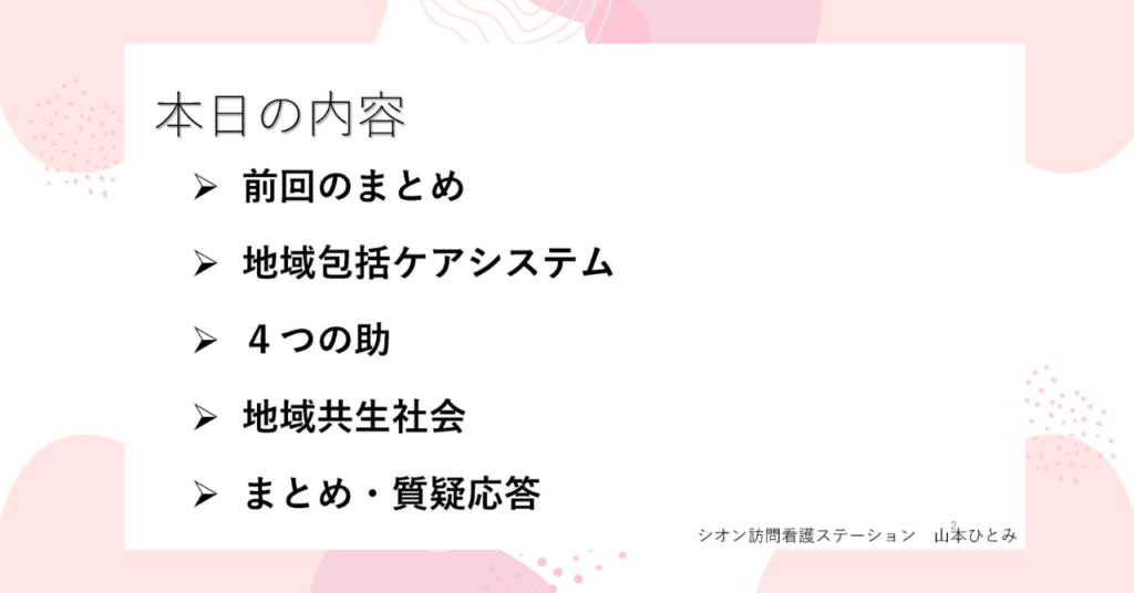 国が推進する「地域包括ケアシステム」の本質と、現場での実践について学生と考えました。