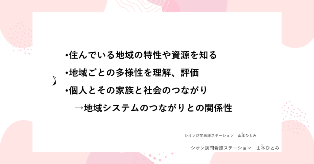人と地域をつなぐ視点が欠かせないと改めて感じました。