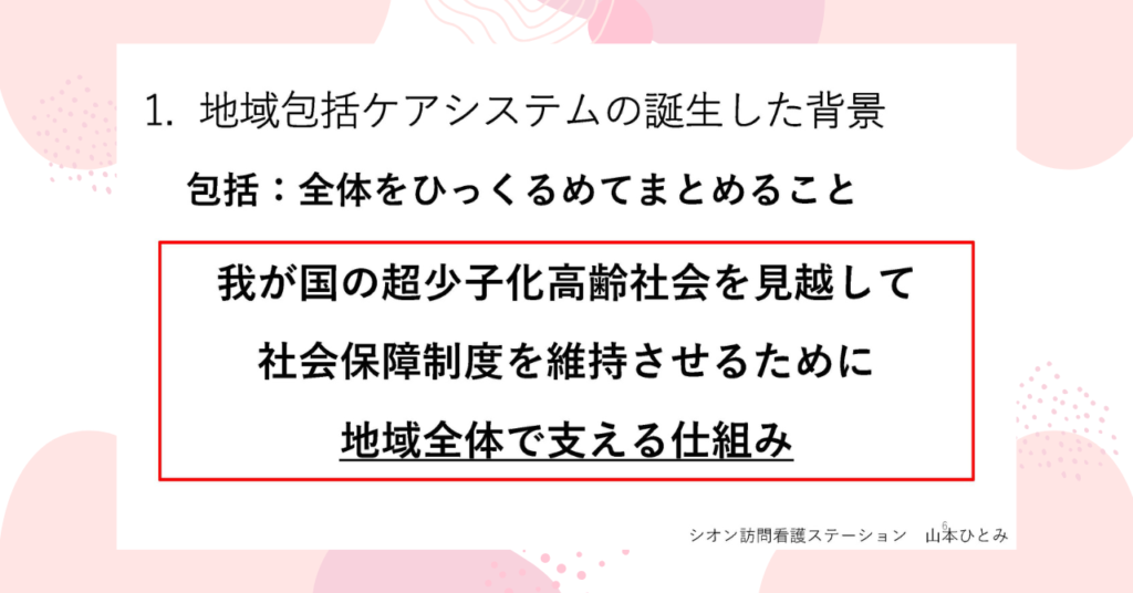 今回のメインテーマである「地域包括ケアシステム」とは、